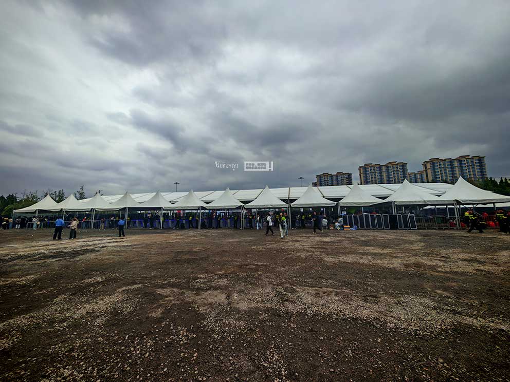 白色尖頂篷房以其輕盈優(yōu)雅的造型,成為音樂節(jié)的精致服務(wù)補(bǔ)充。篷房單頂直徑3米、高度3米,純白篷布搭配纖細(xì)的鋁合金支架,外觀如同童話中的小城堡,與音樂節(jié)的自由氛圍相得益彰。四周無篷布的開放式設(shè)計(jì),讓篷房內(nèi)的服務(wù)一目了然,觀眾可隨時(shí)進(jìn)入體驗(yàn),既提升了服務(wù)的便捷性,又通過白色尖頂?shù)慕y(tǒng)一視覺,讓散落的服務(wù)點(diǎn)形成和諧的整體,豐富了音樂節(jié)的場景層次。