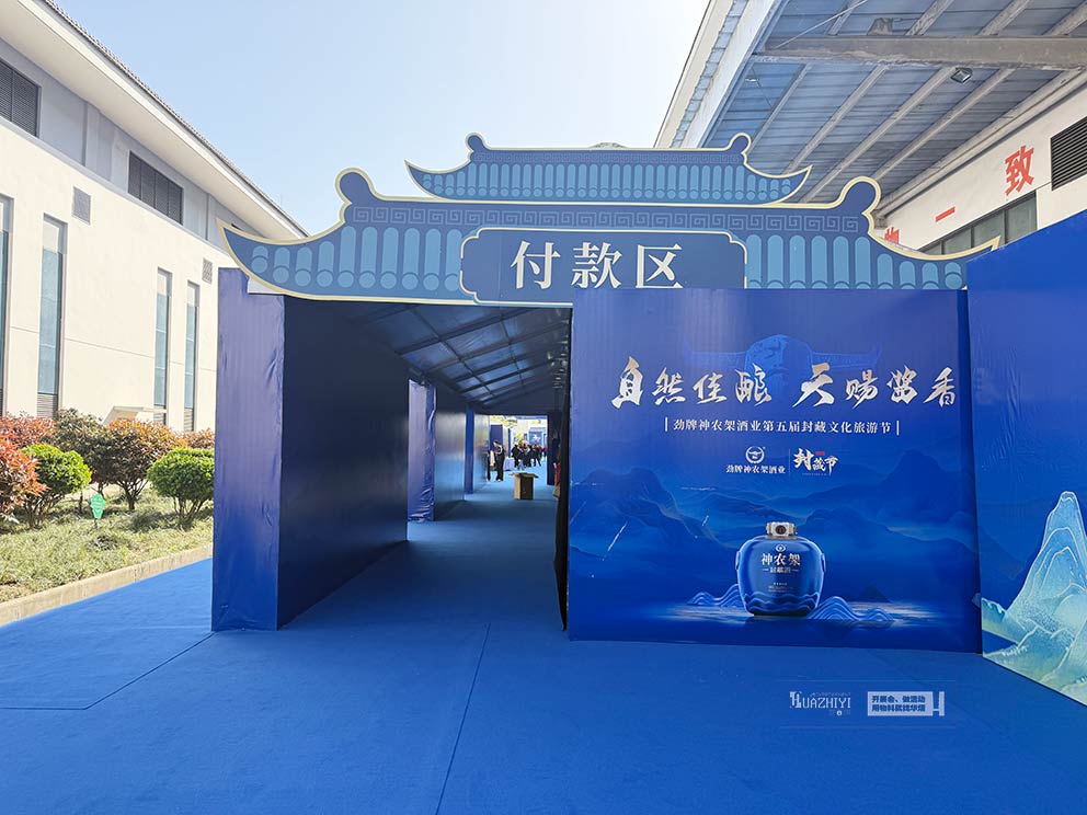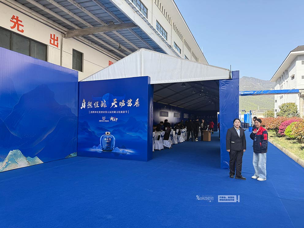 定制款藍色篷房成為活動現(xiàn)場的亮眼標(biāo)識,色調(diào)清新雅致,與神農(nóng)架的青山綠水相映成趣,既呼應(yīng)了勁牌神農(nóng)架酒業(yè)的生態(tài)理念,又兼具實用功能。篷房采用高強度框架與優(yōu)質(zhì)篷布,防曬防水、穩(wěn)固耐用,可靈活劃分封藏儀式區(qū)、休憩區(qū)、展示區(qū),為各項活動的順利開展提供可靠空間保障,同時成為現(xiàn)場打卡取景的熱門場景。