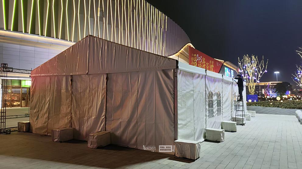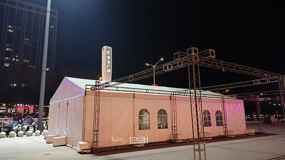 首先,篷房的保溫是關(guān)鍵。在搭建時(shí),應(yīng)選用雙層PVC篷布等具有良好隔熱性能的材料,同時(shí)篷房的四面可選擇半透明的或玻璃的組合形式,充分利用自然光線,提升室內(nèi)溫度感。此外,還可以在篷房?jī)?nèi)部安裝空調(diào)、暖風(fēng)機(jī)或暖爐等供暖設(shè)備,確保篷房?jī)?nèi)溫暖如春。