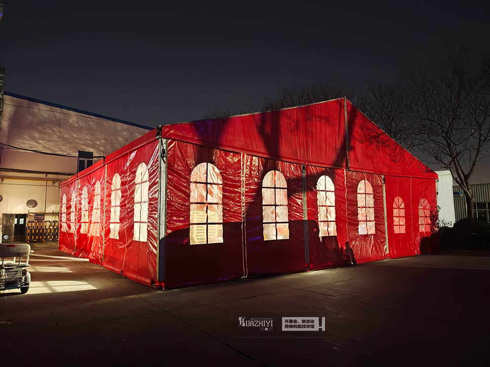 此次搭建的紅色篷房主體框架選用高強度鋁合金材質,經(jīng)過精細加工與加固處理,結構穩(wěn)固抗風,能從容應對戶外復雜天氣,為商戶貨物與市民安全筑牢保障。篷布選用防水防曬的PVC刀刮布,不僅色澤飽滿持久,還具備良好的隔熱、通風性能,確保篷房內環(huán)境舒適,即便在寒冷天氣也能為市民提供溫暖的采購空間。同時,篷房內部無立柱遮擋,空間利用率極高,商戶可根據(jù)經(jīng)營品類靈活規(guī)劃展示區(qū)域,無論是特色食品、文創(chuàng)產(chǎn)品還是民俗好物,都能得到充分展示。