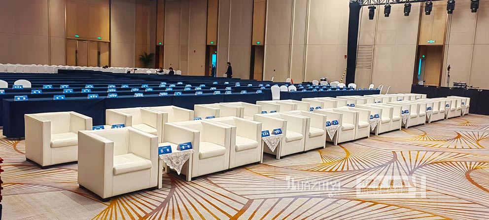 以質(zhì)感贏信任,以專業(yè)助圓滿。開封沙發(fā)出租用白色單人皮質(zhì)沙發(fā)與茶幾,為高新假日酒店活動(dòng)打造了高端雅致的休憩空間,既彰顯了酒店的高端定位,又提升了嘉賓的活動(dòng)體驗(yàn)。